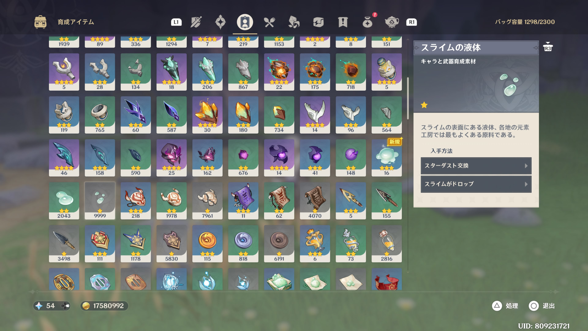 いつの間にかスライムの液体が9999個になってた(゜Д゜;)